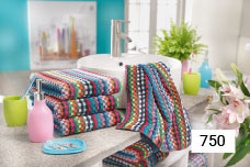 Kakovost vpojnega sukanega frotirja, obstojna barva. Barva brisač se lahko razlikuje. Ta izdelek je večinoma narejen iz ostankov preje in tako pomaga zmanjšati količino odpadkov!